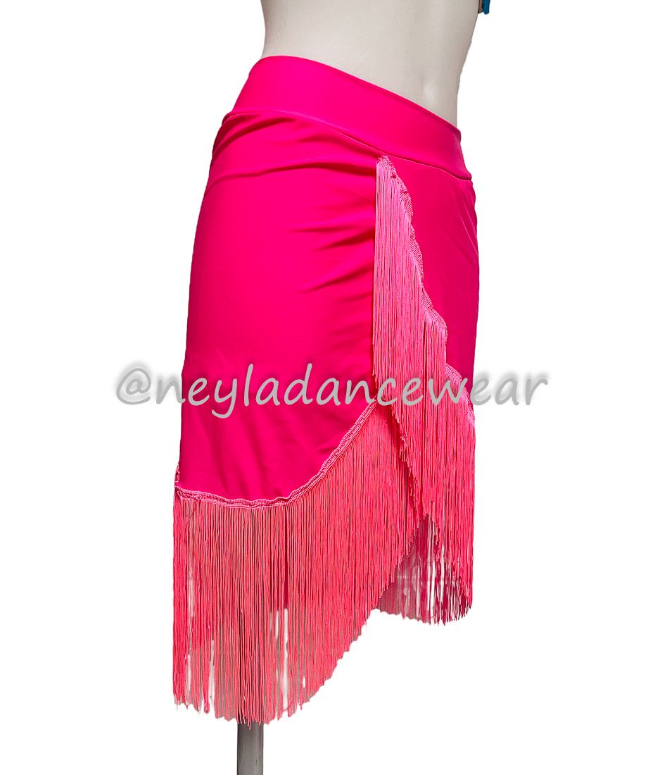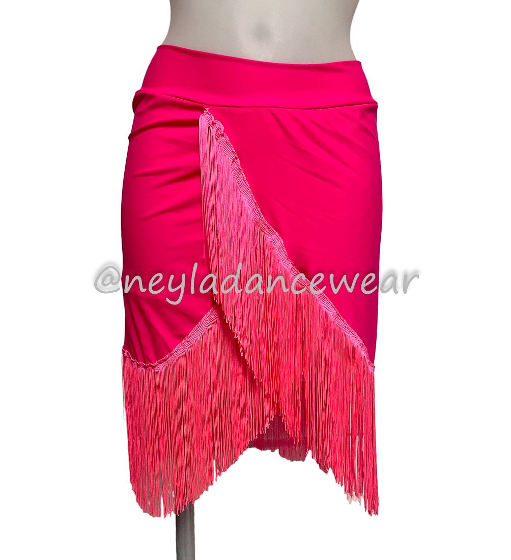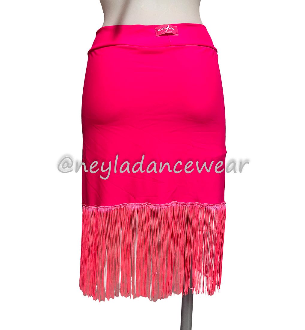 The Diala skirt by Neyla Dancewear is designed to enhance movement with every step. Made in a vibrant fuchsia tone and decorated with long asymmetrical fringes, this piece is ideal for belly dance, tribal fusion, oriental dance, and Latin shows looking for a striking, comfortable, and dynamic garment.