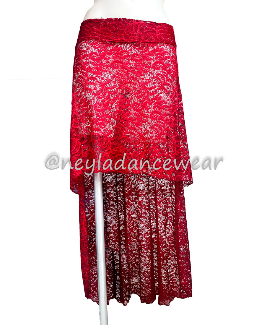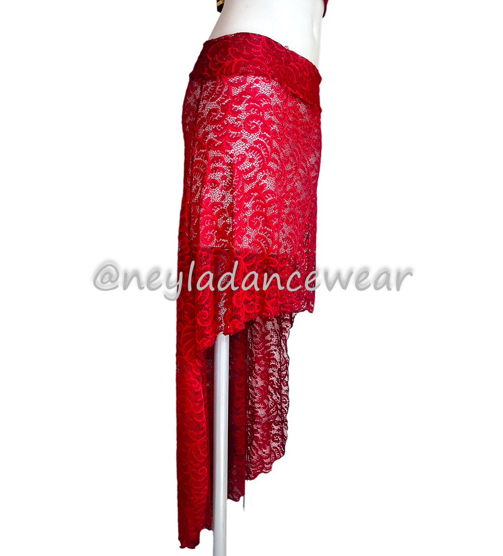 The Hiranur skirt is designed to enhance your presence in belly dance and oriental dance. Made from high-quality red lace, it blends elegance and sensuality, adding sophistication to every choreography.