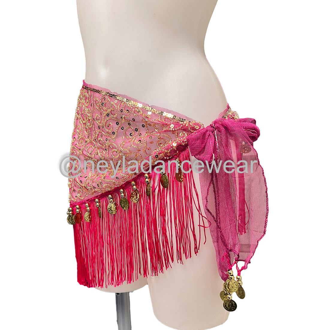 La ceinture de hanches Aaliyah est un accessoire incontournable pour toutes les danseuses de danse orientale, danse du ventre ou fusions modernes qui recherchent énergie, tradition et mouvement dans leur tenue. Confectionnée dans un tissu léger et ornée de paillettes dorées, de broderies délicates et de pièces métalliques, cette ceinture met en valeur chaque mouvement par son éclat unique et son rythme sonore.