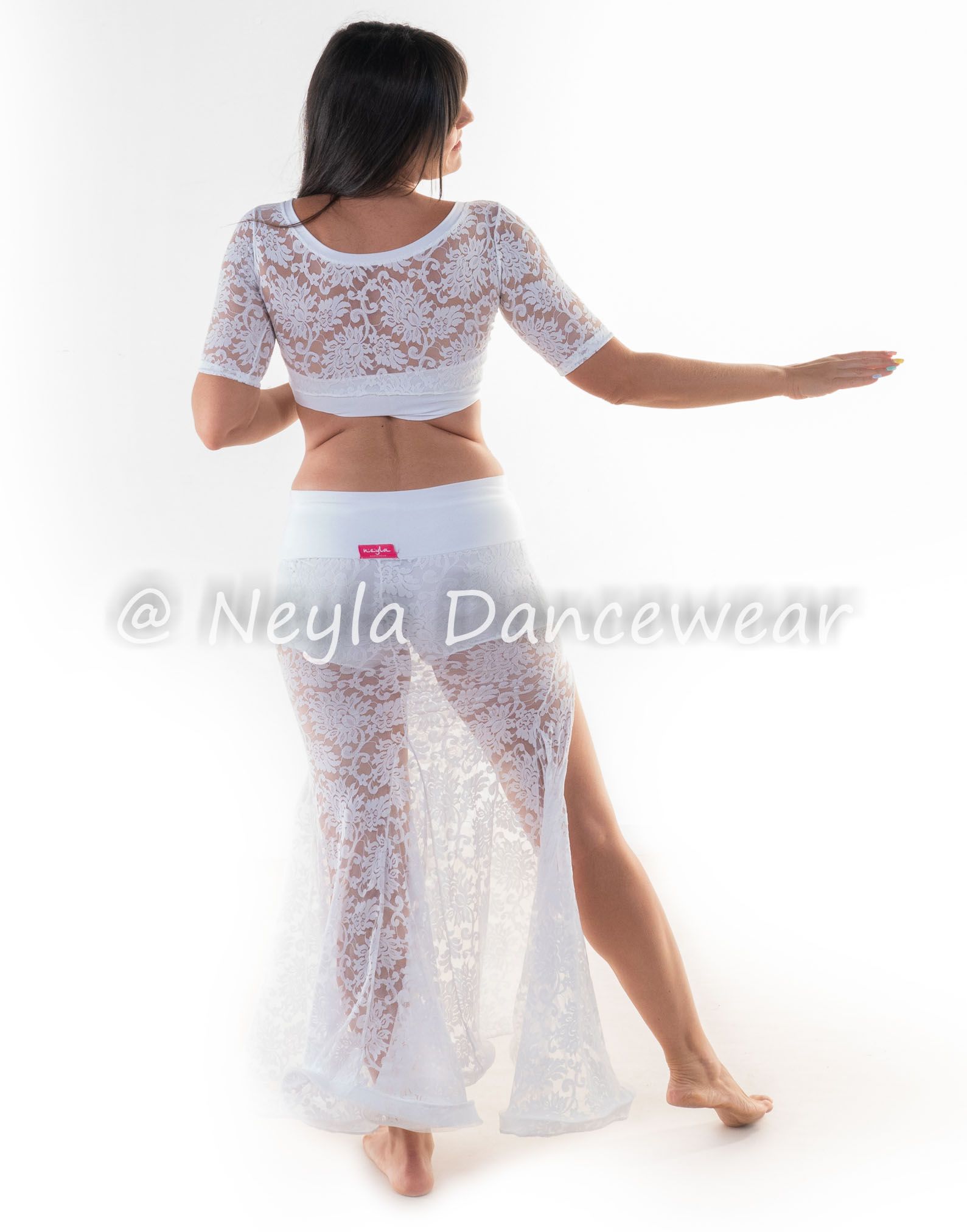 L’Ensemble Anás en couleur blanc est parfait pour les groupes recherchant un design élégant, confortable et original. Confectionné en dentelle white délicate, il apporte une touche raffinée et distinguée à vos chorégraphies de danse orientale, danse du ventre ou fusions.
