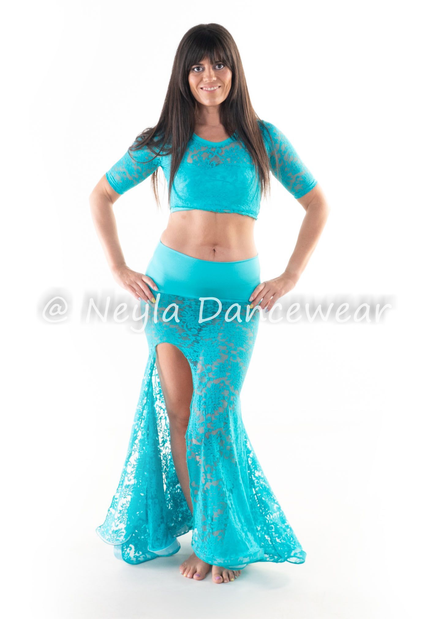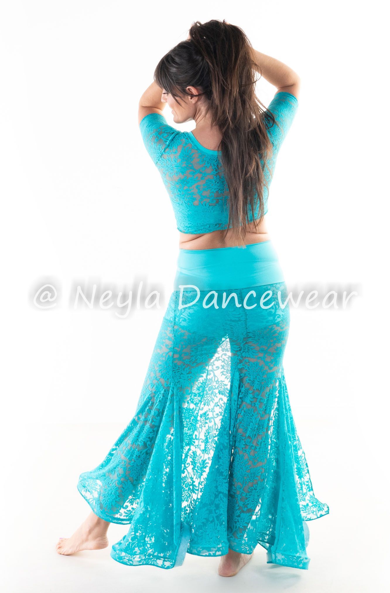 El Traje Anás en color aguamarina es una opción perfecta para grupos que buscan un diseño elegante, cómodo y con personalidad única. Confeccionado en un precioso encaje aguamarina, este conjunto aporta un toque de distinción y delicadeza a tus coreografías de danza del vientre, danza oriental o fusiones.
