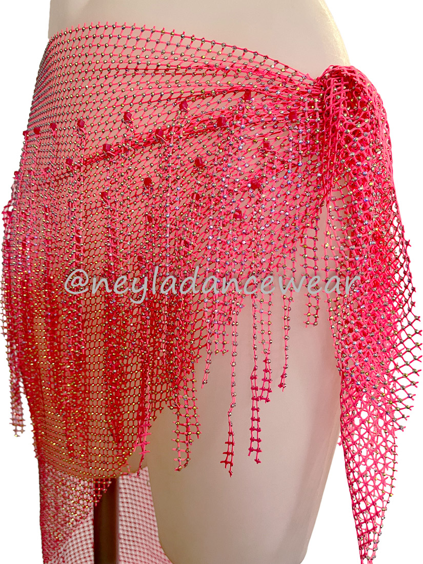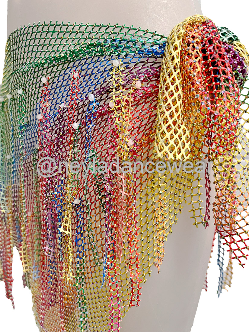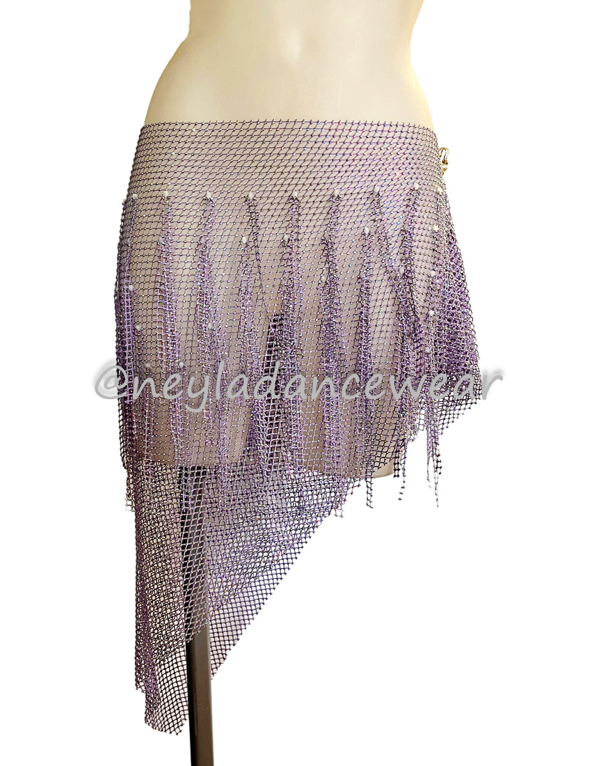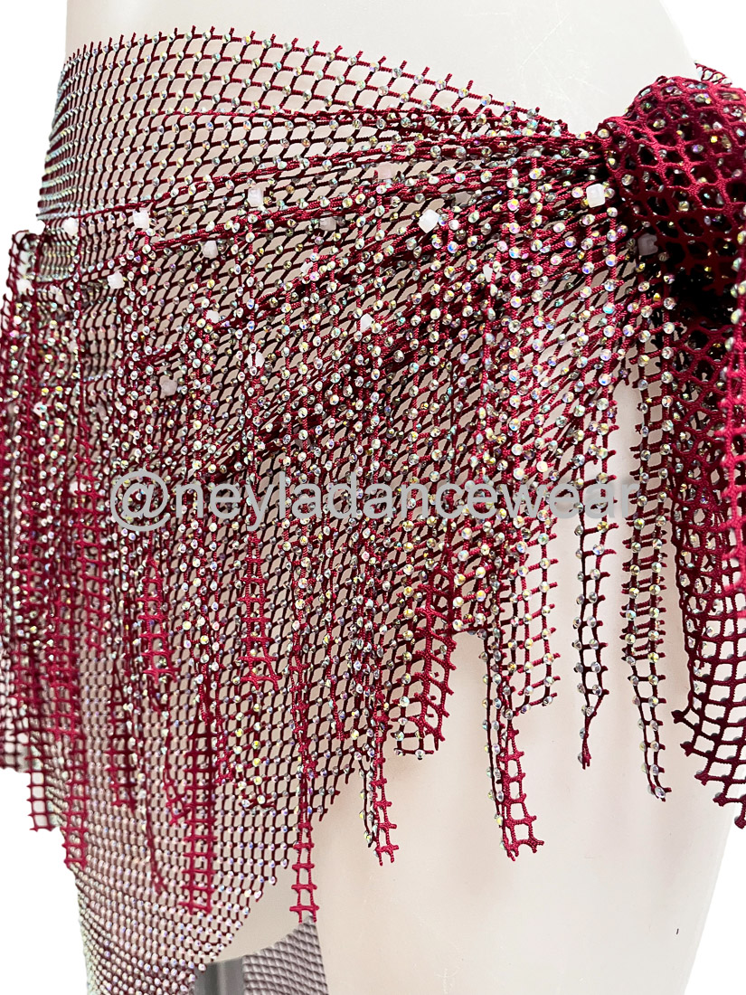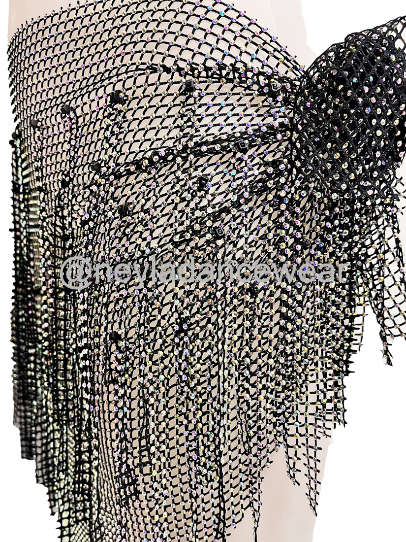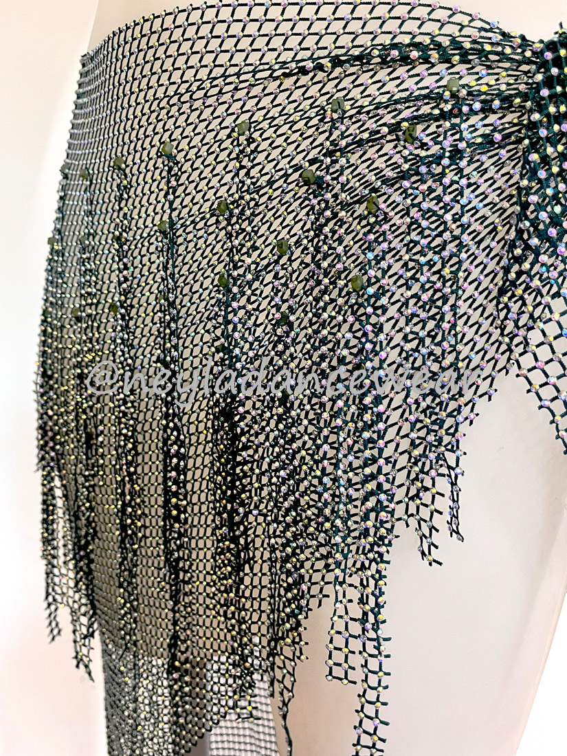 El pañuelo de cadera Basma es un clásico imprescindible para resaltar cada uno de tus movimientos en la danza del vientre, danza oriental y fusiones modernas. Diseñado en una delicada malla ligera y decorado con hileras de pedrería brillante en forma de flecos, este accesorio añade un toque de elegancia y dinamismo a tus coreografías, creando destellos hipnóticos en cada giro y ondulación de cadera.