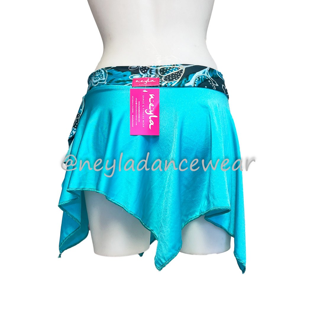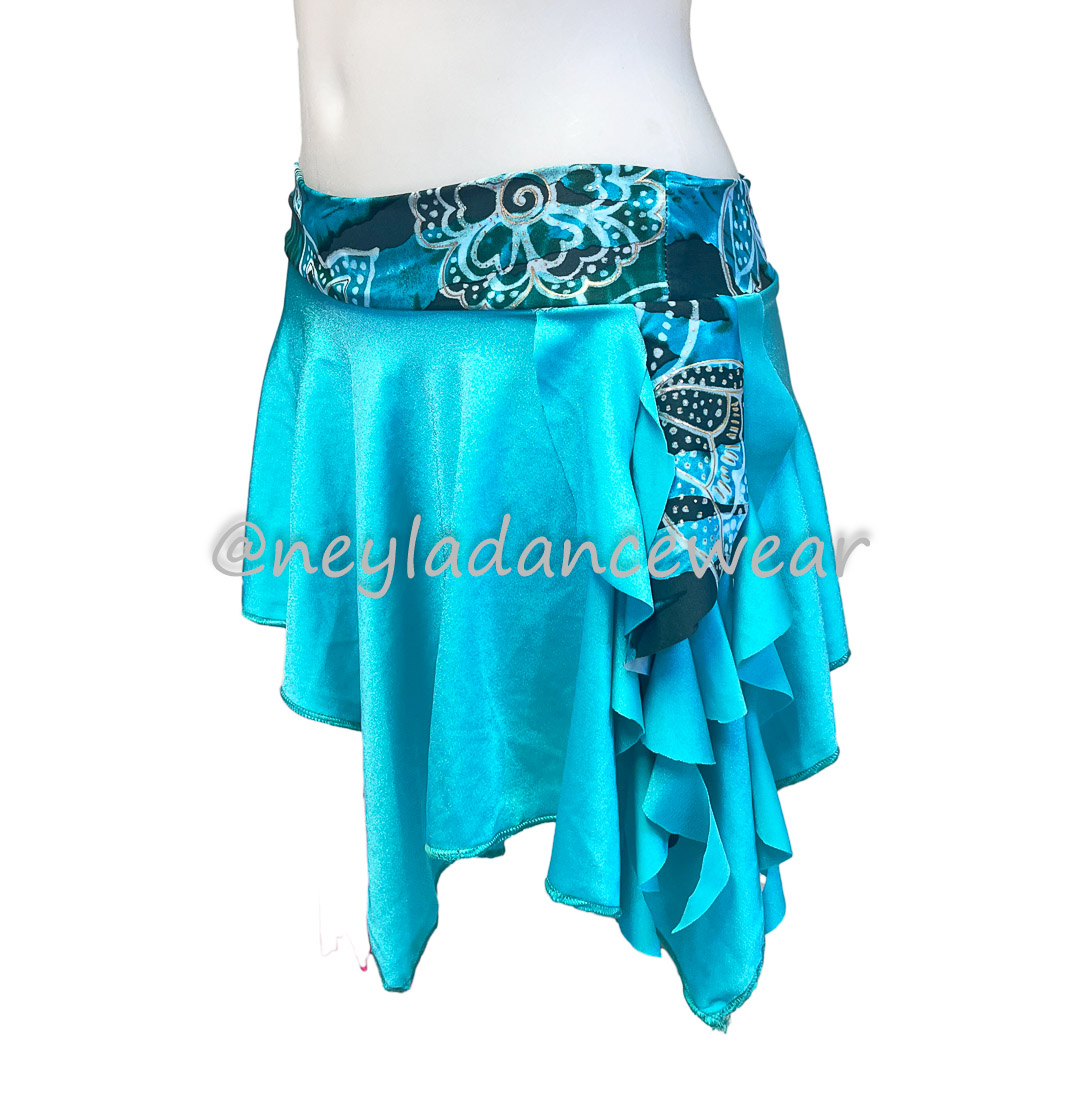 La Falda Kubra es una pieza diseñada para bailarinas que buscan un equilibrio entre comodidad, estilo y originalidad en sus atuendos de danza del vientre y fusiones modernas. Confeccionada en un vibrante tono azul turquesa, esta falda asimétrica captura la luz y resalta cada movimiento de cadera, giro y vibración.