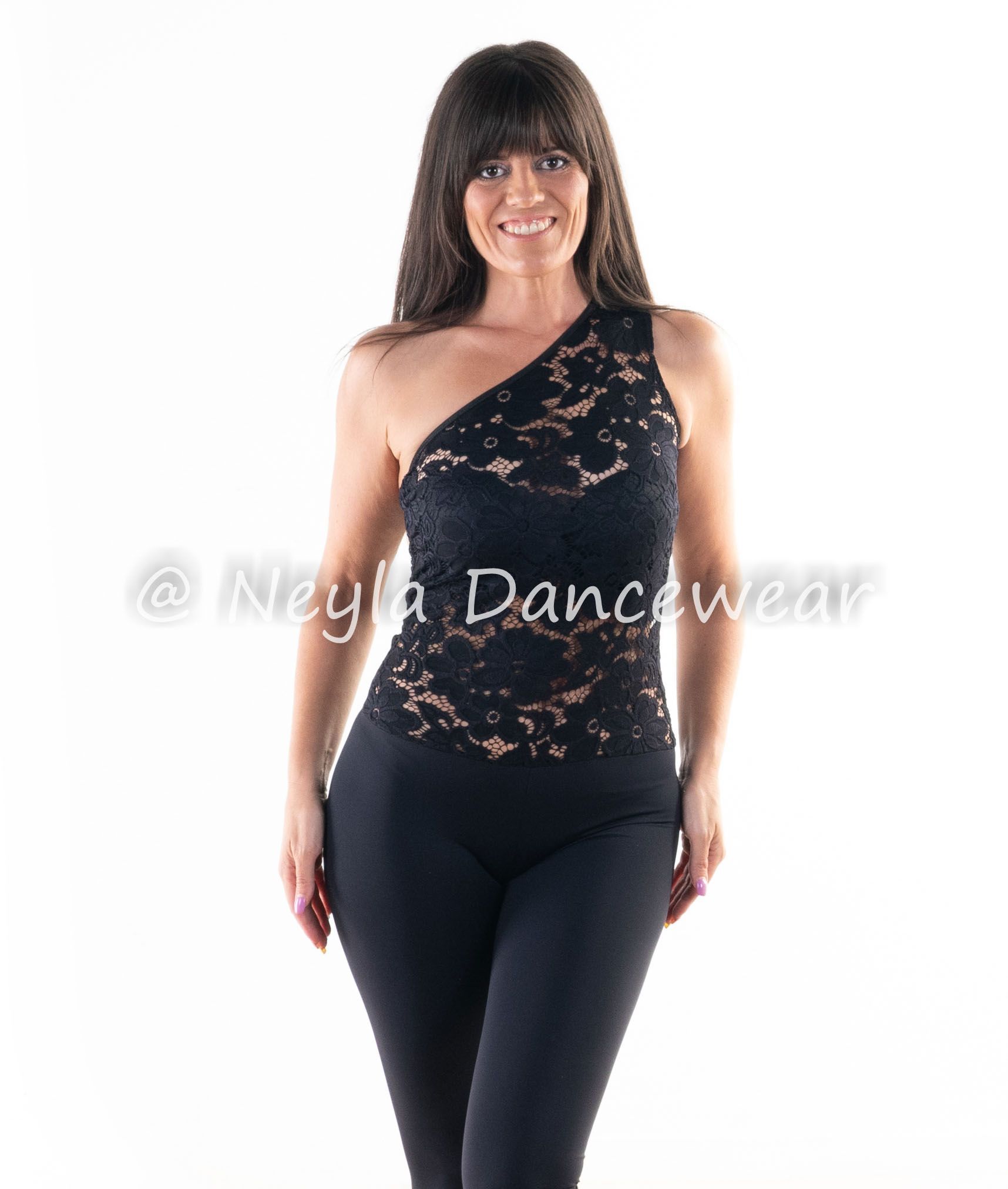 Diseño exclusivo: Tirante asimétrico y encaje floral que aportan un estilo único, ideal para clases, entrenamientos, actuaciones y sesiones fotográficas.
